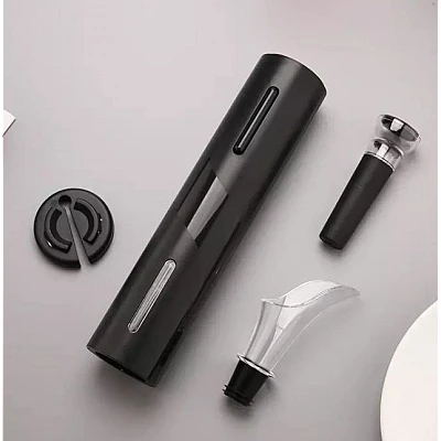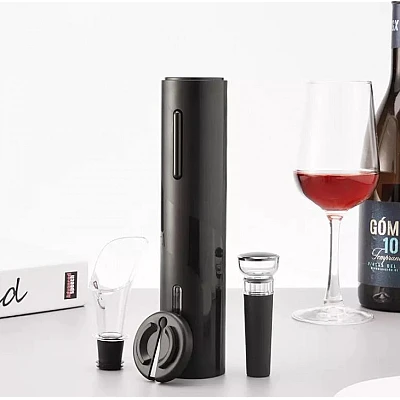 Set complet de vin compus dintr-un tirbuson, taietor de capsule, aerator si capac pentru vidat.