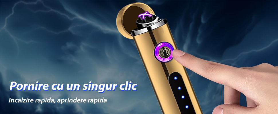 Aprindere tactila: foloseste tehnologie inovatoare pentru a rezolva problema brichetei traditionale cu arc, cu oprire automata si indicator de incarcare. Pentru siguranta dumneavoastra, bricheta se stinge dupa 10 secunde sau cand capacul este inchis. Comutatorul poate fi controlat prin intermediul unui ecran tactil. Bricheta electrica cu design dublu cu arc electronic si tehnologia senzorului tactil, sunt usoare si nu au zgomot enervant, performanta buna si protectie a mediului, durata lunga de viata.